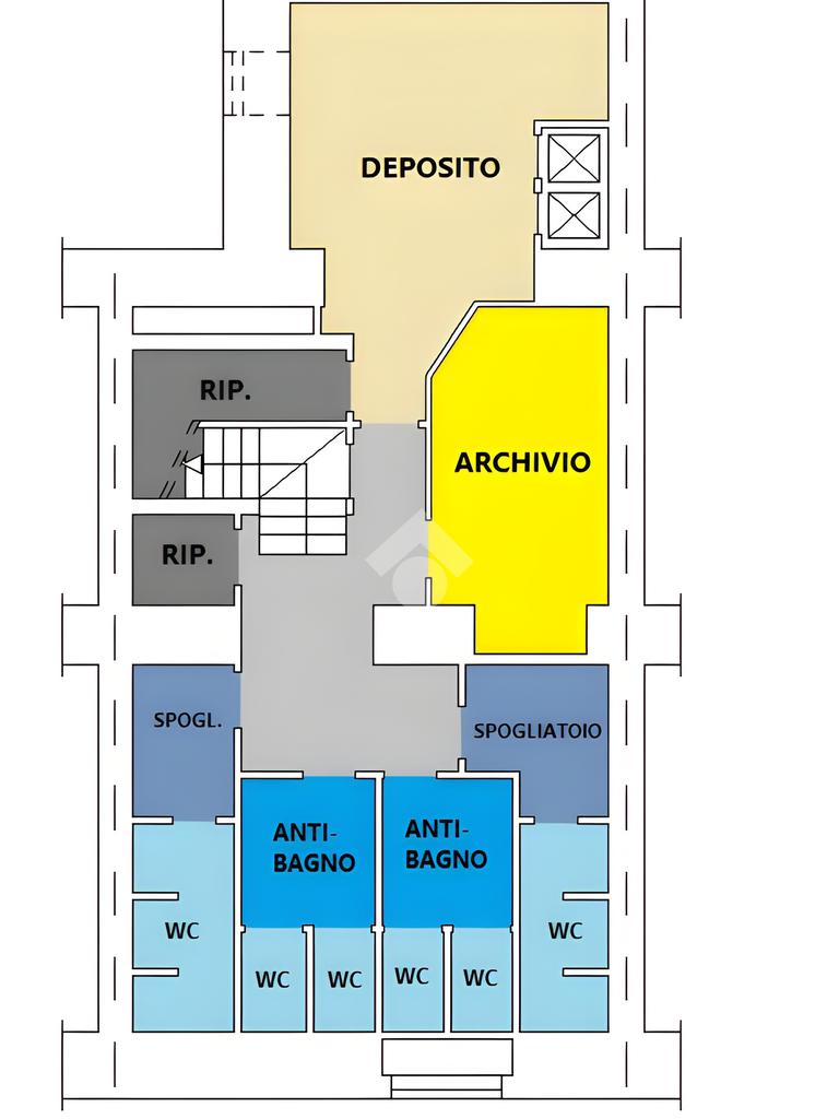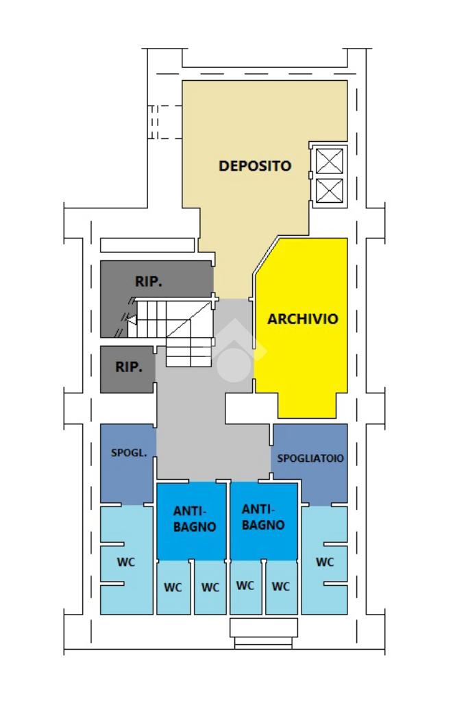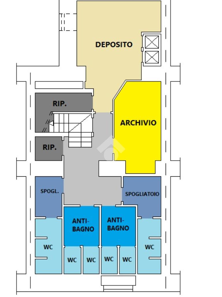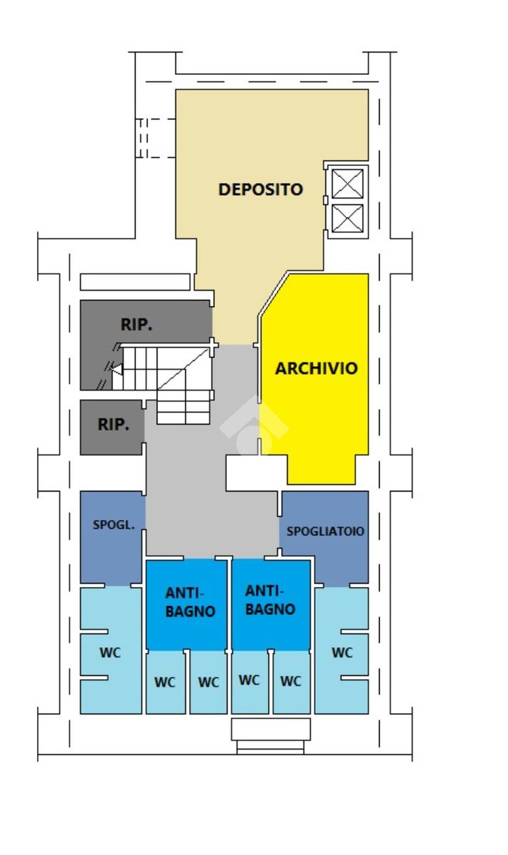 Il piano s1 è dedicato alla funzionalità: troviamo un ufficio, un deposito, spogliatoi e vari servizi igienici.