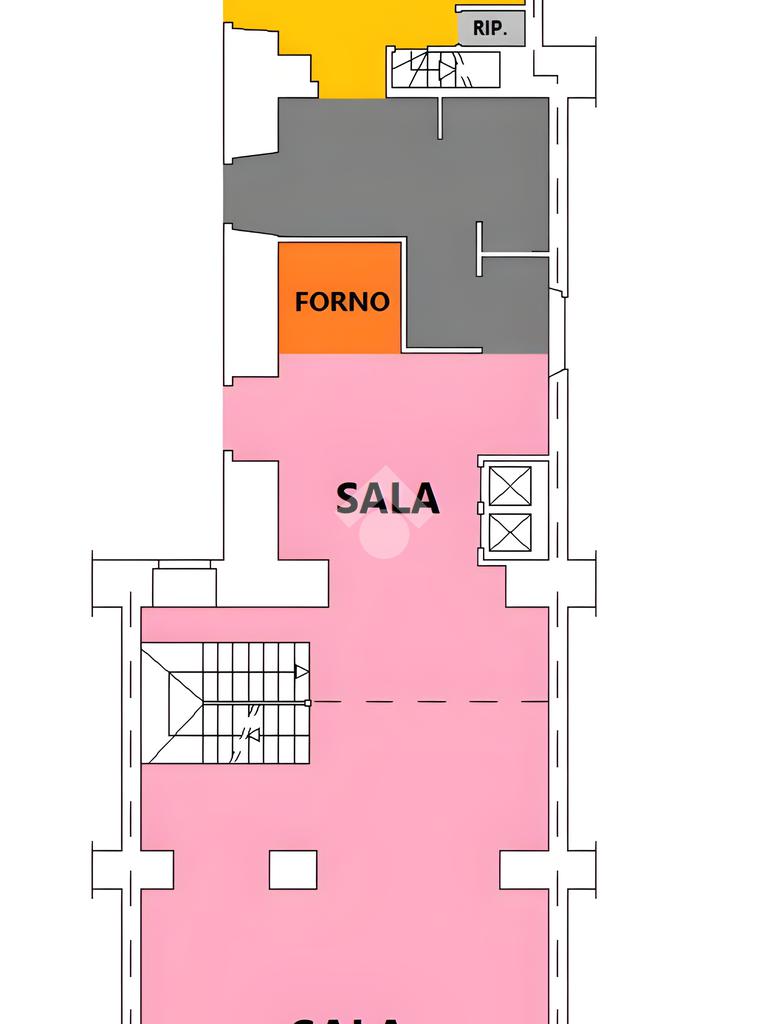 La struttura è dotata di due canne fumarie indipendenti: una destinata al forno a legna e l’altra al servizio della cucina professionale, già equipaggiata con attrezzature moderne e completa di tutti gli elettrodomestici necessari. Le due vetrine direttamente su strada assicurano un’elevata visibilità in un contesto di grande passaggio, caratteristico della zona.
