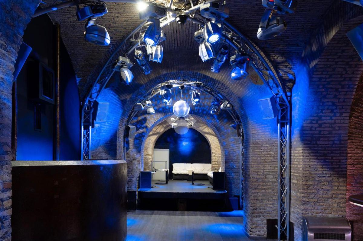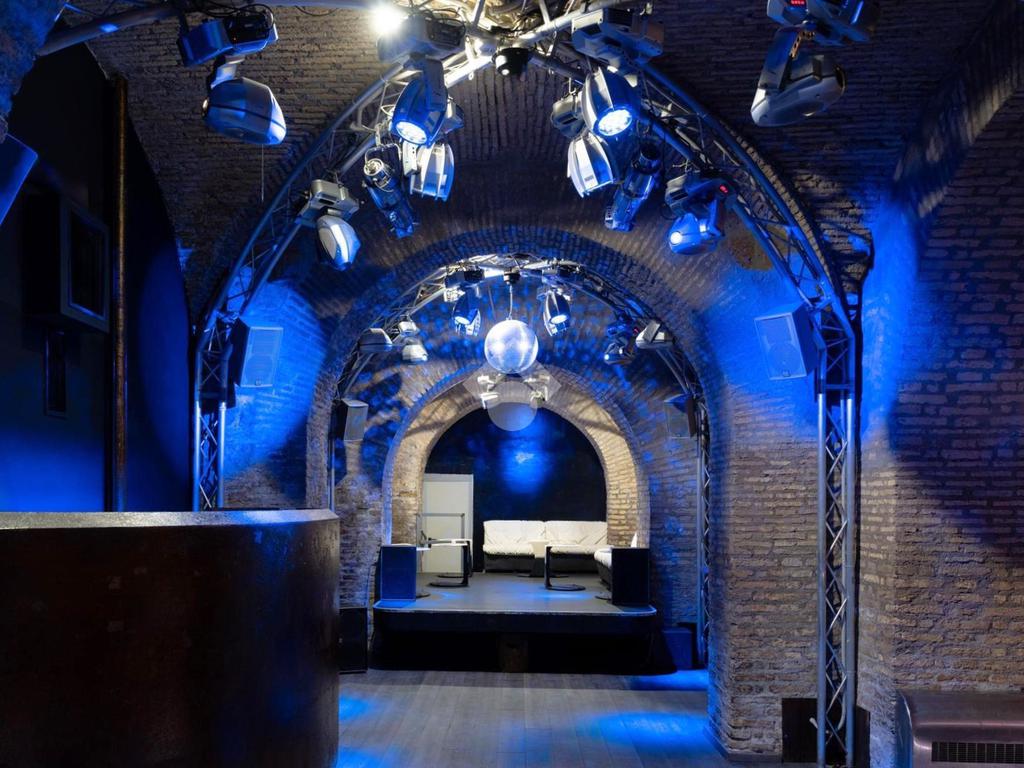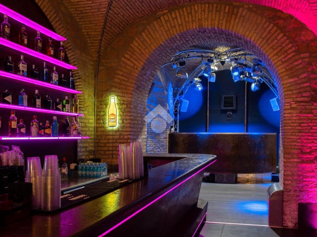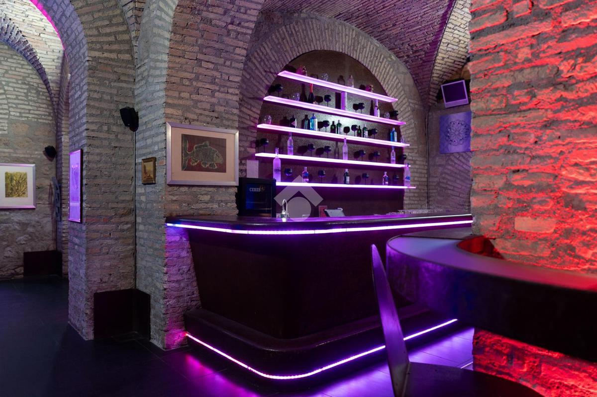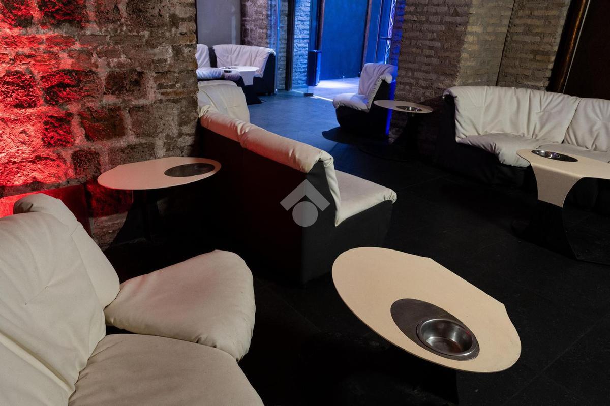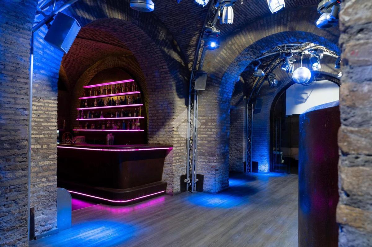 - al piano interrato troviamo tre banconi bar, sale e salottini vari, palco per spettacoli, spogliatoi e camerini, saletta fumatori, cucina (dotata di canna fumaria), uffici, guardaroba, bagni, locali tecnici e ripostigli.