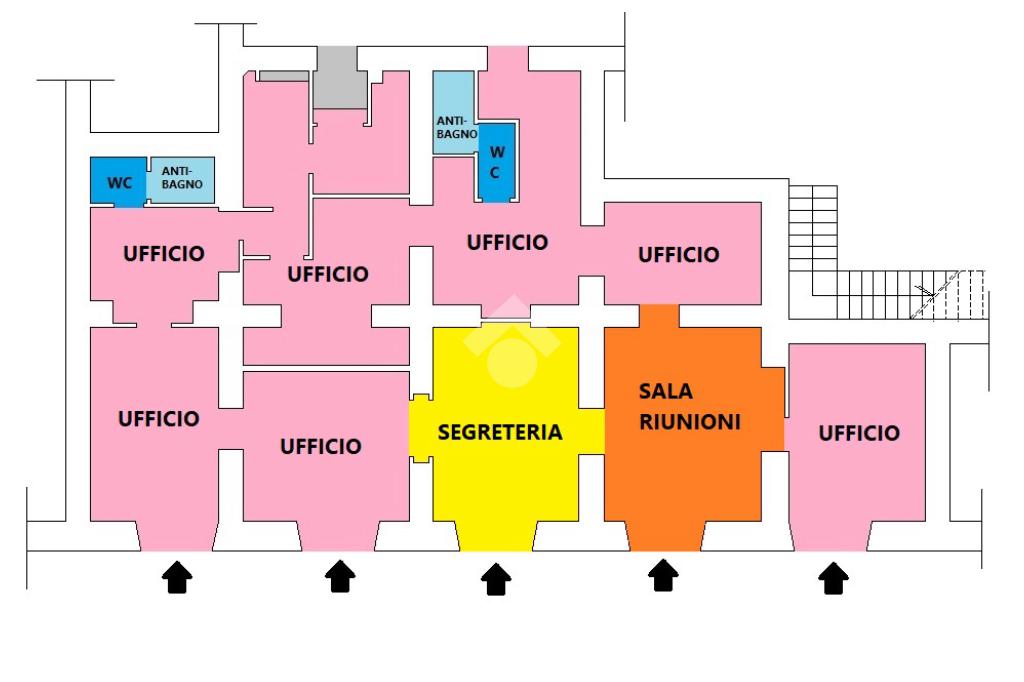 L'ufficio è posizionato al piano strada e dispone di ben cinque vetrine su strada di cui due adibite ad ingresso, che garantiscono un'ottima visibilità.